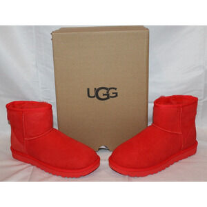 NIB UGG Women's Classic Suede Shearling Lined Mini Boots Cherry Red