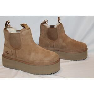 NIB UGG Women's Neumel Platform Chelsea Suede Platform Mini Boots Chestnut