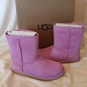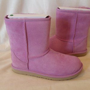 NIB UGG YOUTH 5 6 WOMEN'S 7 8 CLASSIC SHORT WATER RESISTANT SUEDE BOOTS PINK