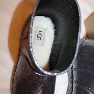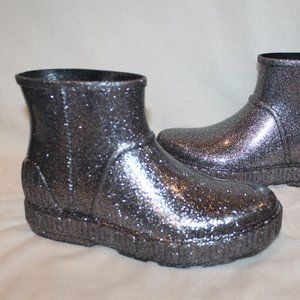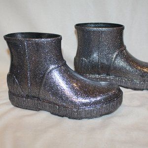 NIB UGG YOUTH 5 6 WOMEN'S 7 8 GLITTER SILVER SHORT RAIN BOOTS