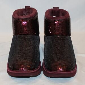 NIB UGG YOUTH 5 WOMEN 7 SEQUIN MINI SHEARLING LINED BOOTS BURGUNDY PORT