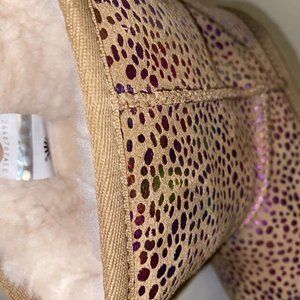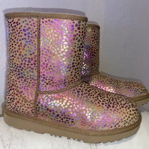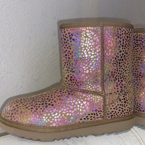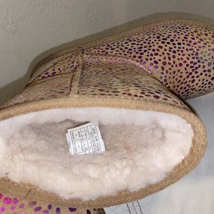 NIB UGG YOUTH 6 WOMENS 8 CLASSIC SHORT SPOTS METALLIC WINTER BOOTS CHEST…