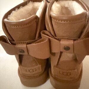 Ugg's Ultra Mini Bailey Leather Bow is made with subtle touches of metal hardware, a sugarcane EVA outsole, and a super soft microfiber lining.