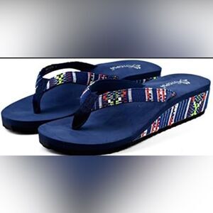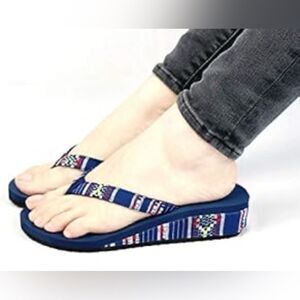NIB Utopia Women’s Blue Multi Color Stitching Wedge Flip Flops - Size 7