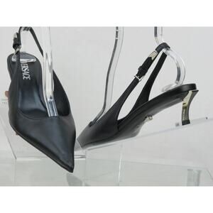 NIB VERSACE BLACK LEATHER SILVER MEDUSA LOGO SANDALS KITTEN HEEL PUMPS 41 US 11