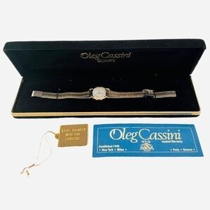 NIB VNTG OLEG CASSINI Designer’s Silver Gold Tone Stainless Steel Women’s Watch