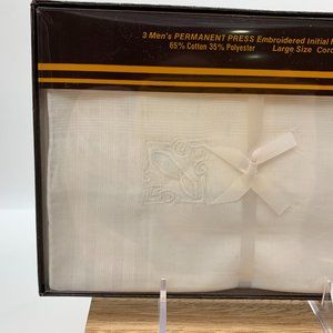 NIB VTG Yves St Laurent box set 3 B-monogrammed handkerchiefs cotton/polyester
