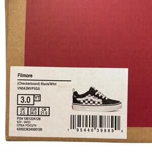 Step into timeless Vans style with these brand new in box (NIB) Vans Filmore Checkerboard Casual Shoes. Featuring the signature black and white checkerboard design, these shoes are sized as Youth 3 (equivalent to Women's 5), offering a versatile fit for a youthful yet classic streetwear look. Enjoy durable textile construction paired with a reliable rubber outsole for everyday wear.