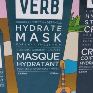 New in Box - Verb Hi Hydration Kit - kit includes 12 fl oz Hydrate Shampoo, 6.8 fl oz Hydrate Mask and 5.3 fl oz Hydrate Styling Cream