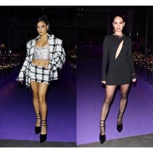 Step into bold glamour with these Authentic Versace Aevitas Pointed Platform Pumps, crafted in smooth black leather. Featuring triple ankle straps design, dramatic pointed toe, and Versace’s signature towering platform block heel silhouette, these pumps embody the house’s iconic mix of strength and elegance. Perfect for evening events, red carpet moments, or adding a daring edge to your look.