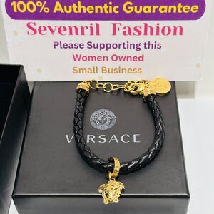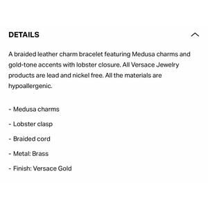 NIB Versace La Medusa Gold Tone Goddess Black Braided Leather Bracelet