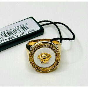 NIB Versace Ring IT 15/ US 7 Enamel Icon Medusa Engraved Gold Tone $450