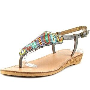 NIB Very Volatile Sandals Zahara Women's Size 7 Colorful Beaded Grey Cork NEW