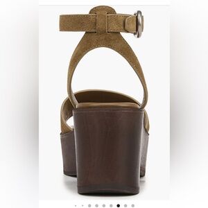 NIB Vince Camuto Philipa olive wood khaki tan suede flatform ankle strap size 7
