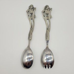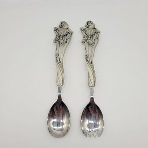 NIB Vintage 1994 Seagull Pewter Canada Sheffield England Iris Salad Serving Set