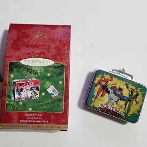 NIB - Vintage 2-pc Hallmark Keepsake Ornament Super Friends Tin Lunchbox - 2000