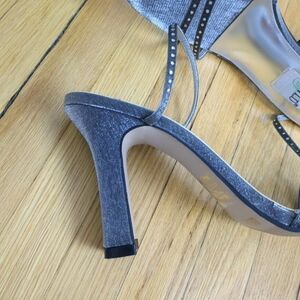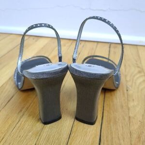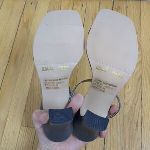 New in box Vintage 90s Wild Rose silver metallic strappy heels. Block heel. Straps embellished with rhinestones. No flaws!