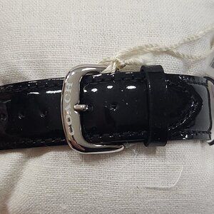 NIB vintage Coach chronograph stainless steel and black patent leather band watch (14501512). 37mm case with 20mm band, unisex styling, water resistant to 3 ATM. New battery and working perfectly.