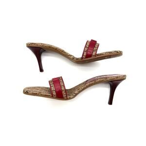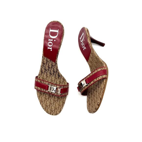 NIB Vintage Dior Diorissimo John Galliano Red Monogram Mule Heeled Sandals 40