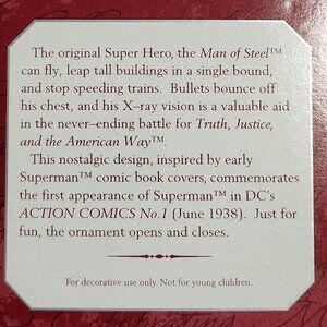 Brand new, in box. Hallmark Keepsake Ornament - Superman Commemorative Edition working tin lunchbox. Still in its original wrapping. N4611