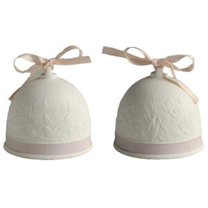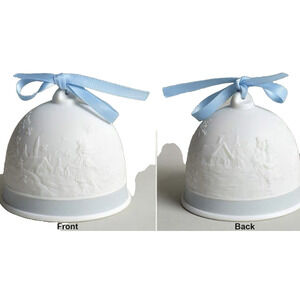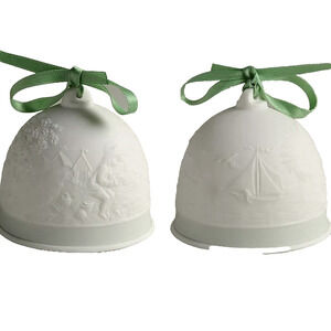 These were presented at membership renewal to the Lladro Membership Society members - they are vintage early 1990's. All four bell ornaments are in excellent condition - never used and carefully stored in the original boxes - I see that 2 are missing the original paperwork but otherwise these are pristine. My pictures show the front/back of each bell - FOUR bells total. All of the boxes show wear and writing on the exterior but the delicate bells are fantastic - a wonderful collection and complete set!