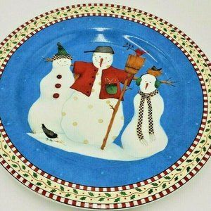 NIB Vintage Sakura Debbie Mumm Snowman Christmas Dessert/Salad Plates Set of 4
