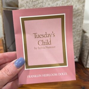 NIB Vtg Franklin Mint Heirloom Dolls Days Of The Week Doll "Tuesday's Child"