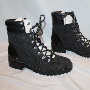 NIB WOMEN'S COACH LORREN HOUNDSTOOTH BLACK CHALK LEATHER HIKER BOOTS SZ 9