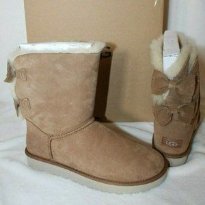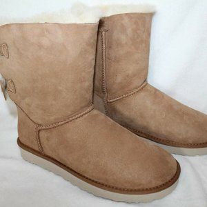 NIB WOMEN'S UGG MEILANI CLASSIC SHORT SUEDE BOW SHEARLING BOOTS CHESTNUT