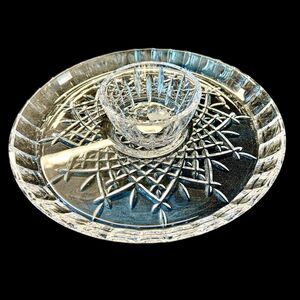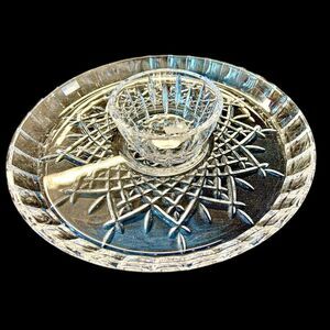 Marquis by Waterford Markham Chip & Dip Lead Crystal Serving Plate with Dip Bowl. New In Box!
