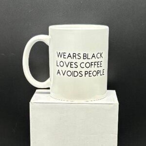NIB "Wears Black Loves Coffee Avoids People" Ceramic Coffee Mug Boxed. New condition, comes boxed.