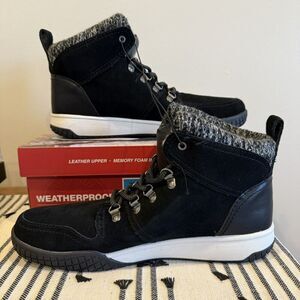 NIB Weatherproof Women's Size 10 Black Winter Boots Ruby Leather Suede Warm Read
