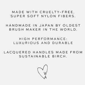 Luxurious and durable, each brush is handmade in Japan by the most prestigious brush maker in the world, using cruelty-free, super-soft nylon fibers and sustainably sourced birch. Thoughtfully designed shorter handles make for an easy, effortless application.
