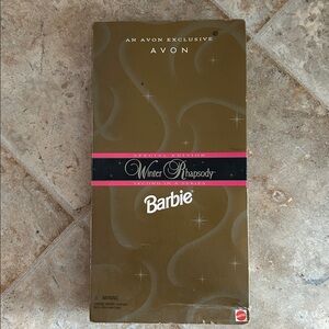 1996 Winter Rhapsody Barbie New in Box. This elegant doll features a pink and black checkered gown with white fur accents. Perfect for collectors. This was a 2nd in a series of Barbies produced for AVON.