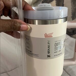 NIB With Straw Stanley 40 Oz , Quencher Tumbler - Cream and Pink.