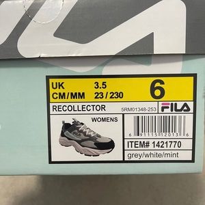 NIB Women’s Size 6 Fila Recollector Fashion Sneakers In Grey/White-Mint Color