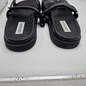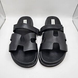 NIB Women's Steve Madden Mayven Black Leather Slides Size 9.5