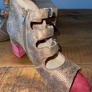 NIB Women's Unity in Diversity Buttercup Red Open Toe Booties EUR 41 US 10