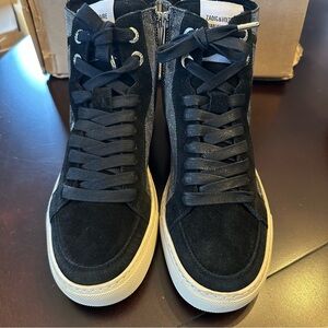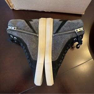 NIB ZV1747 High Flash Sneakers 38 (US 7) Black Suede Silver MSRP $448 Sparkle
