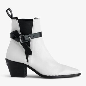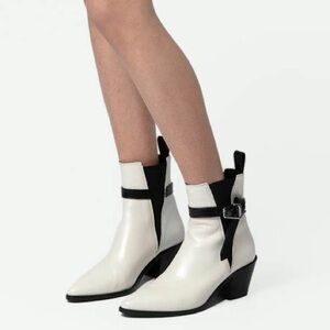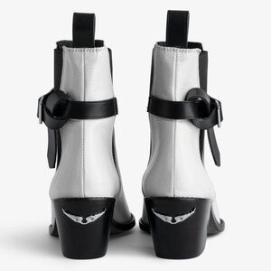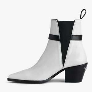 NIB Zadig & Voltaire Tyler Cecilia Vintage Patent Ankle Boot Belted Ice White 40