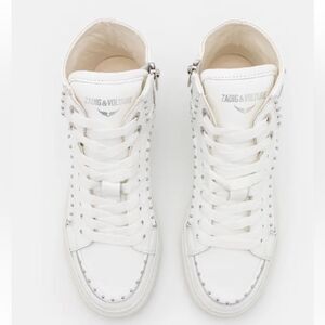 NIB Zadig & Voltaire high flash smooth high top sneakers silver studs 41