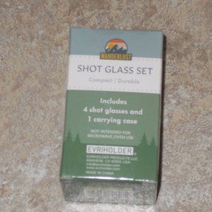NIB four novelty 1 oz stainless steel shot glasses with custom case