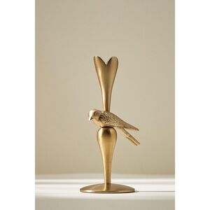 Featuring a perched sparrow, blossom-inspired design, and golden antique-brass finish, this enchanting candle holder lends effortless elegance to any countertop or dining table.