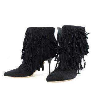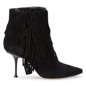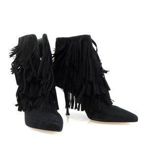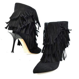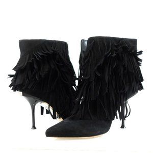 NIB$1265 SERGIO ROSSI Fringed Ankle Suede Booties Pointed Toe Stiletto Heels 37