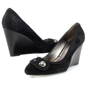NIB$187 COACH Laney Black Suede Wedges Logo Button Slip-On Pump