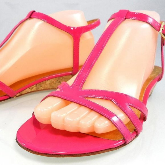 NIB$248 KATE SPADE NY CORK LOW WEDGE T-STRAP LEATHER Strappy Comfy SANDALS 7.5