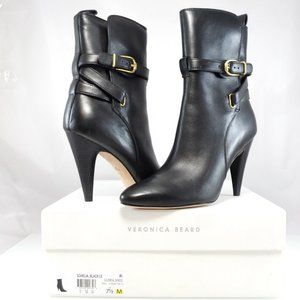 NIB$550 VERONICA BEARD Sohelia Buckled Strap Leather High-heel Ankle Boots 7.5