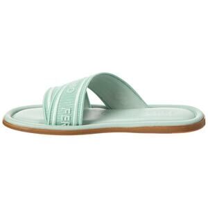 Logo-embroidered straps top this leather-lined slide sandal built for comfort with a well-cushioned footbed in a pretty pastel hue.