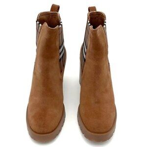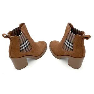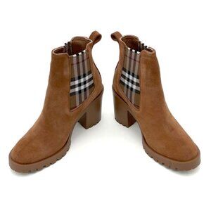 NIB-BURBERRY Check Panel Suede Ankle Boot - 39/8.5