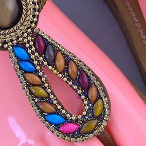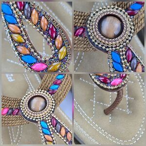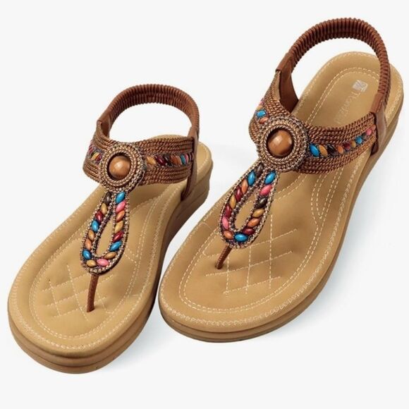 🩵⏭️NIB Brown Beaded Cushioned Boho Sandals Size 8